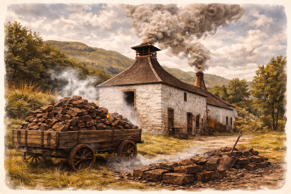In whisky-making regions like Scotland, peat became the default fuel for drying malted barley long before flavour was ever a consideration.
